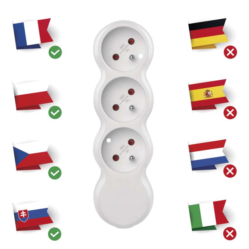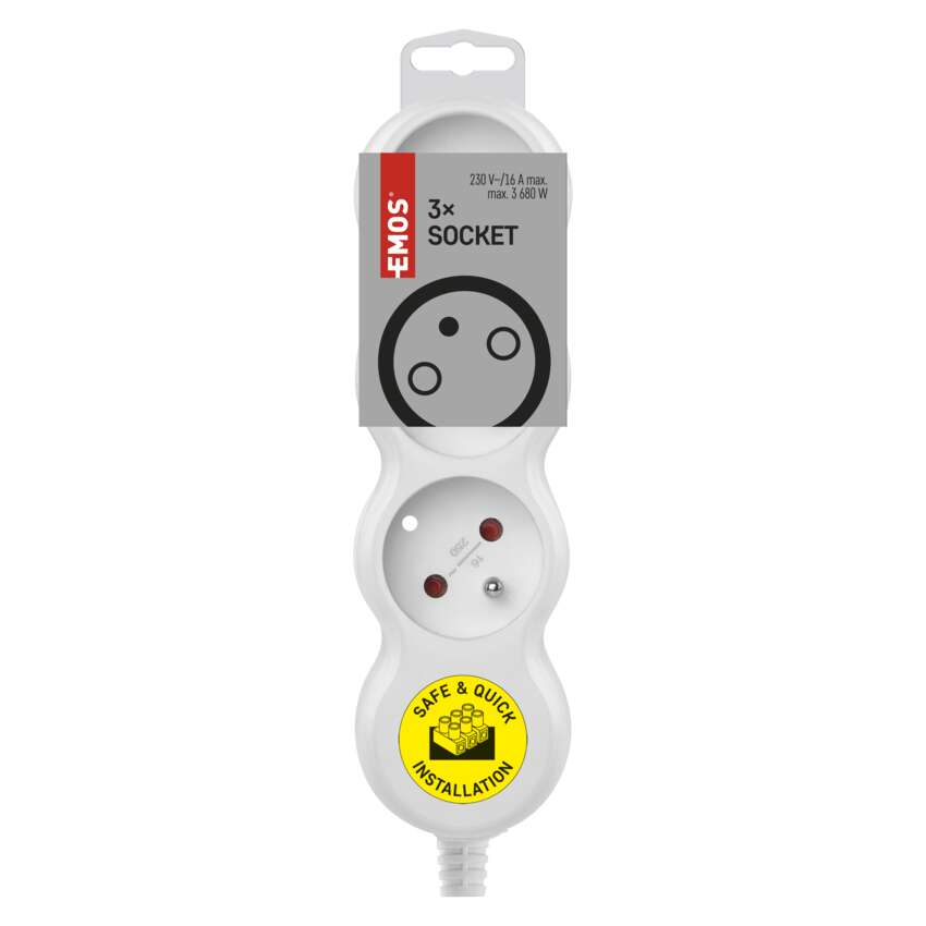 Kvalitní samostatná zásuvka určená pro montáž prodlužovacího přívodu a sloužící k připojení elektrických spotřebičů dle daného počtu zásuvek. Zásuvka je bílé barvy bez vypínače. Max. 16 A.Instalaci může provádět pouze osoba s příslušnou kvalifikací. Při montáži na stěnu je nutné použít vrut se zápustnou hlavou PZ max. průměr 2,5–3 mm, délka 30–40 mm. V případě použití jiného průměru hrozí poškození plastové části otvoru. Pokud dojde k poškození plastové části otvoru, prodlužovací přívod nepoužívejte.