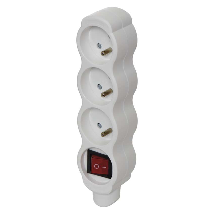 3 zásuvka s vypínačem pro pohyblivé přívody určená pro výrobu prodlužovacích přívodů nebo jako náhradní díl. Vhodná pro maximální zátěž 16 A max.Kvalitní samostatná zásuvka určená pro montáž prodlužovacího přívodu a k připojení elektrických spotřebičů dle daného počtu zásuvek. Zásuvka je bílé barvy s vypínačem.