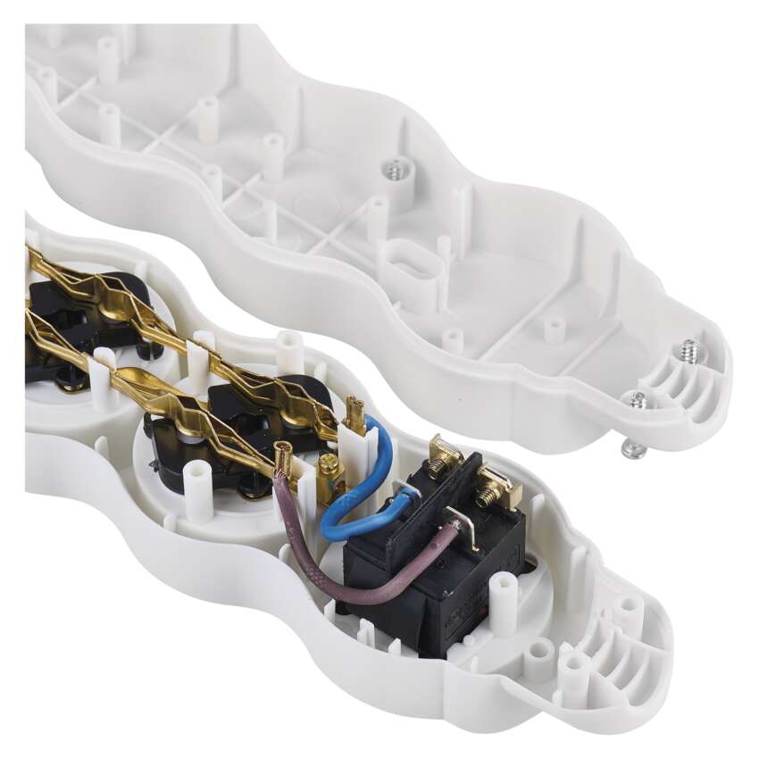4 zásuvka s vypínačem pro pohyblivé přívody určená pro výrobu prodlužovacích přívodů nebo jako náhradní díl. Vhodná pro maximální zátěž 16 A max.Kvalitní samostatná zásuvka určená pro montáž prodlužovacího přívodu a k připojení elektrických spotřebičů dle daného počtu zásuvek. Zásuvka je bílé barvy s vypínačem.