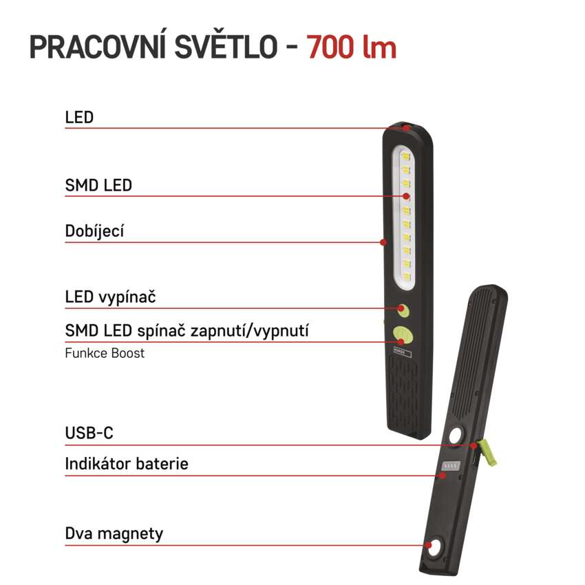 | světelný tok | SMD LED BOOST – 700 lm, SMD LED 100 % – 350 lm, LED 100% – 50 lm |