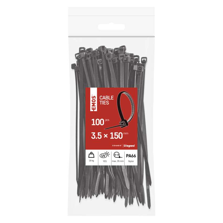 Stahovací páska 150×3,5 mm, černá, 100 ks