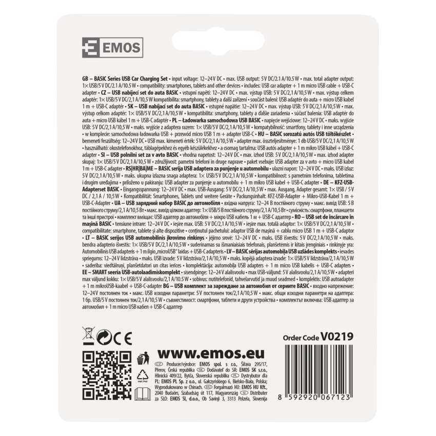 USB adaptér do auta 2,1A + micro USB kabel + USB-C redukce