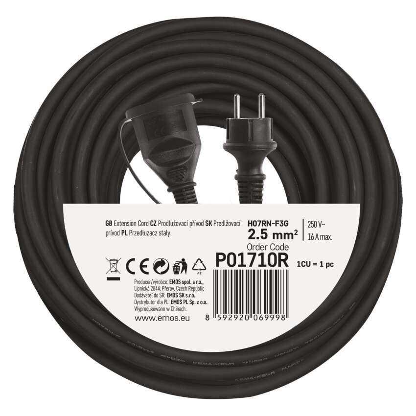 Venkovní prodlužovací kabel 10 m / 1 zásuvka / černý / guma-neopren / 230 V / 2,5 mm2