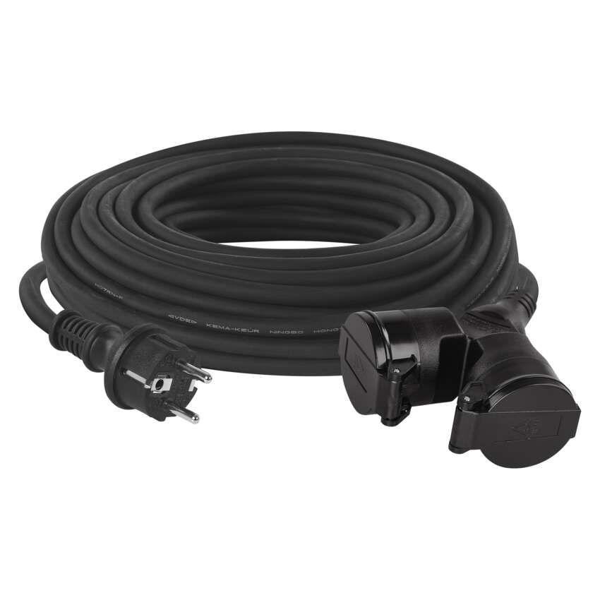 Venkovní prodlužovací kabel 25 m / 2 zásuvky / černý / guma / 230 V / 1,5 mm2