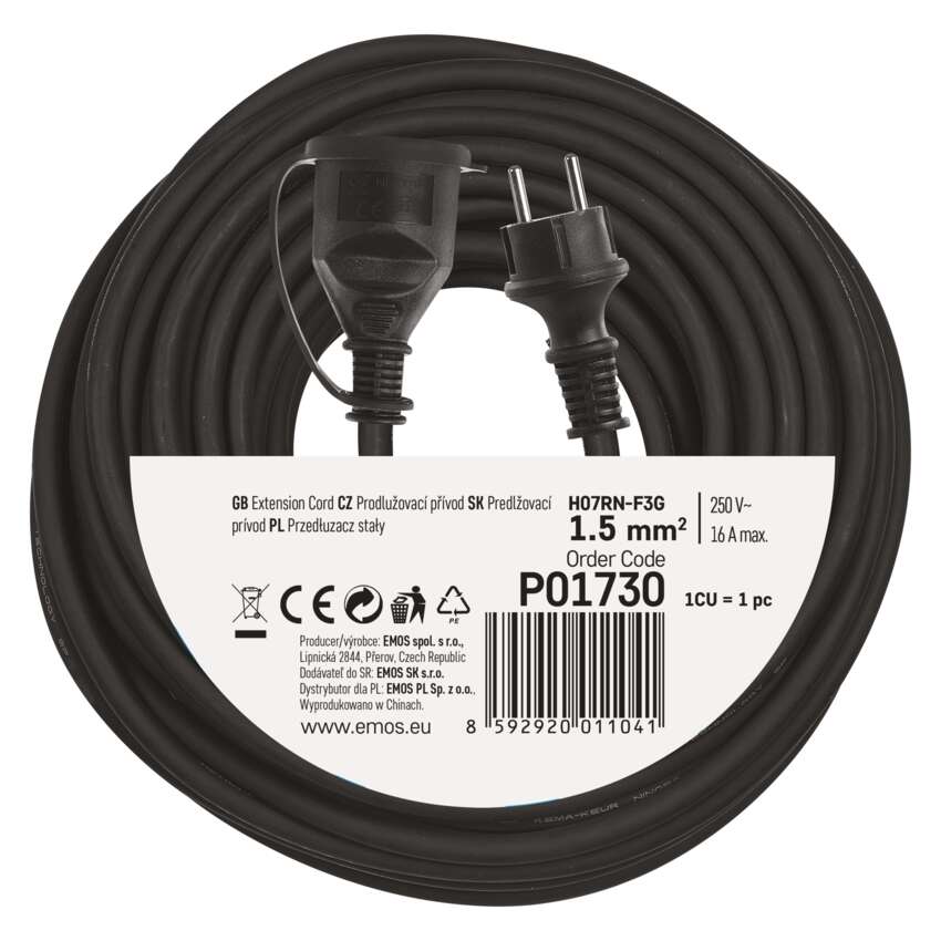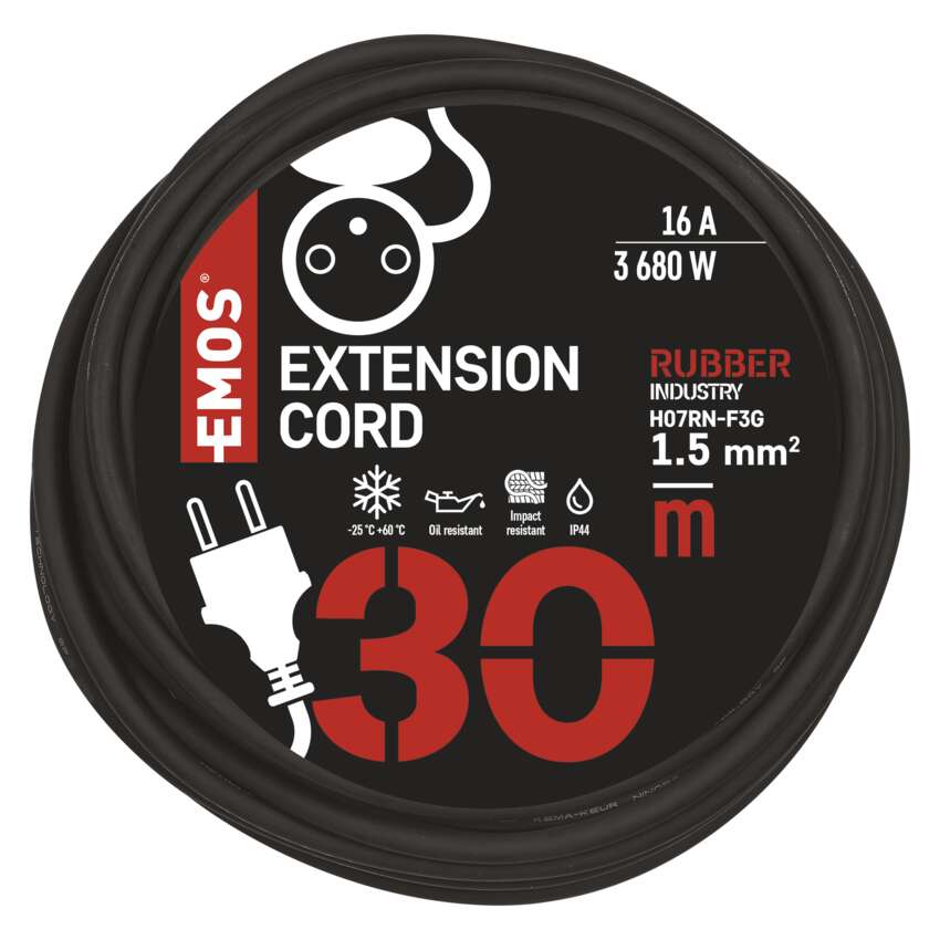 Venkovní prodlužovací kabel 30 m / 1 zásuvka / černý / guma-neopren / 230 V / 1,5 mm2