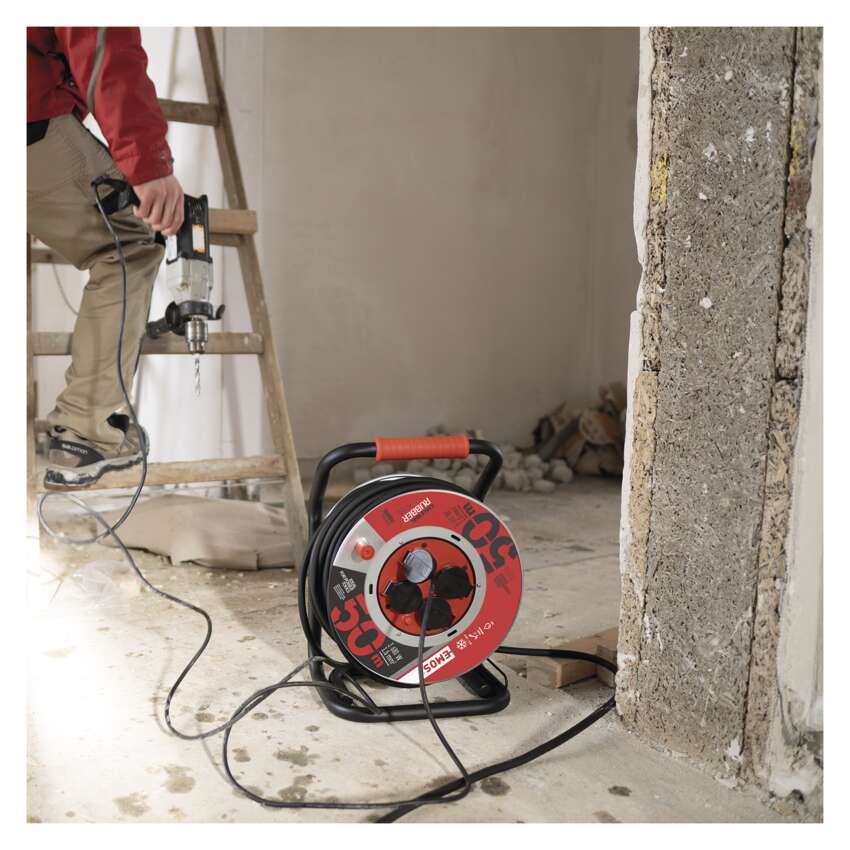 Prodlužovací kabel v domácnostech, dílnách, lehkých provozech umožňuje zapojení až čtyř elektrických zařízení současně. Snadné navíjení kabelu zajišťuje vodící oko a robustní kovové tělo navijáku. Pryžové kabely H05RR-F jsou určeny pro střední mechanická namáhání v prostředí obyčejném, studeném i horkém, vlhkém i mokrém. Kabel s průřezem vodiče 1,5 mm2 odolá vodě, vlhku, studeným i horkým teplotám od -25 °C do +60 °C a nabízí tak mnohostranné využití. Pokud hledáte spolehlivého parťáka, který vám vydrží mnoho let, vsaďte na kvalitní navíjecí buben EMOS nabízený s prodlouženou tříletou zárukou.