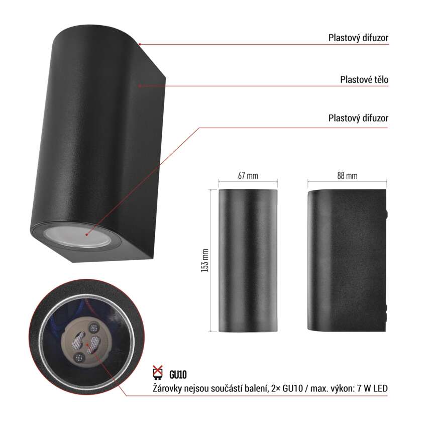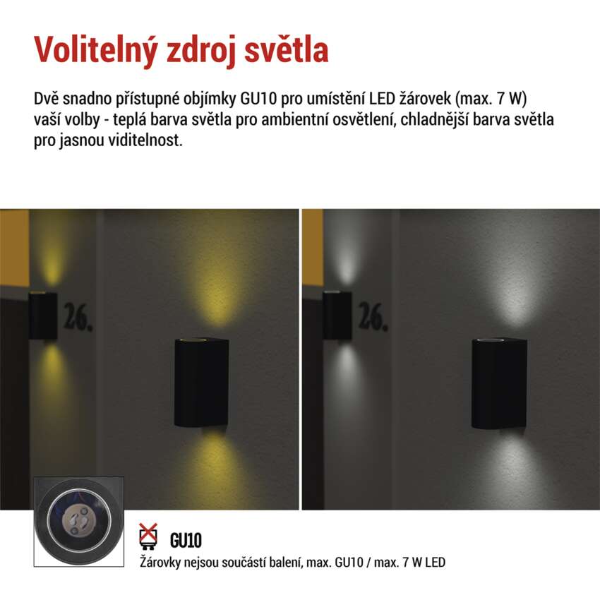 Zahradní nástěnné svítidlo OCULUS, 8,8 x 6,7 x 15,3 cm, 2 x GU10, 2× 7W
