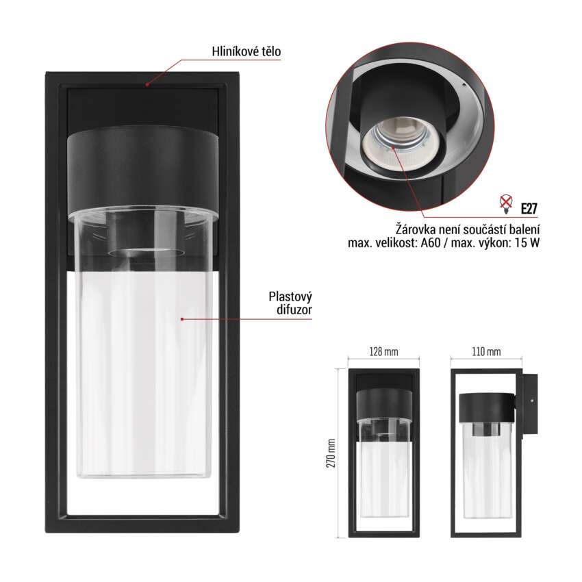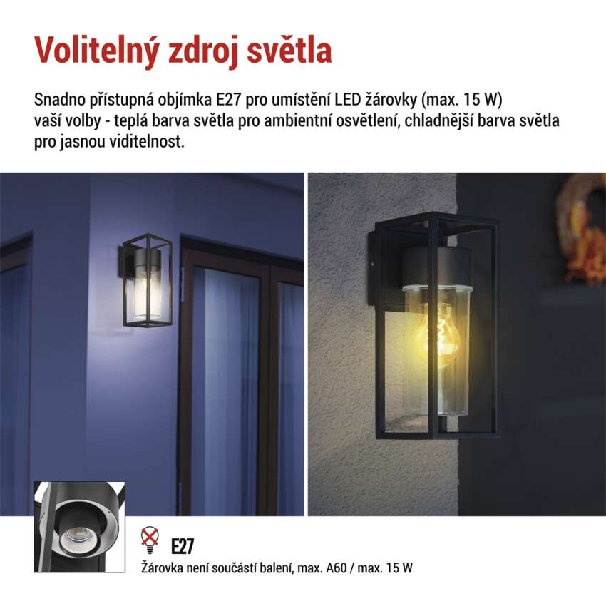 Zahradní nástěnné svítidlo TILLIA, 12,8 x 11 x 27 cm, 1 x E27, 15 W
