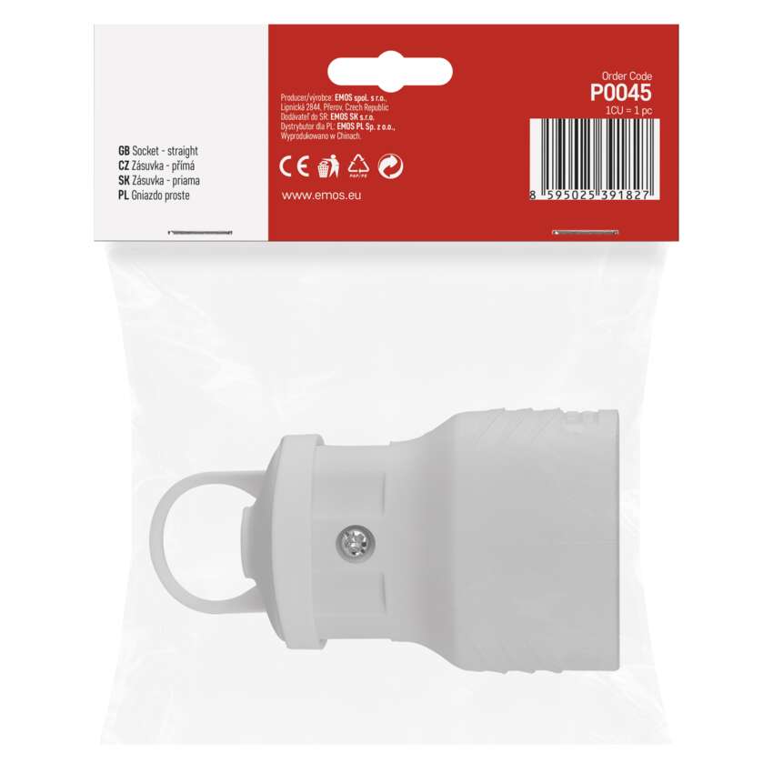 Praktická zásuvka v bílém provedení určená pro montáž prodlužovacího přívodu.