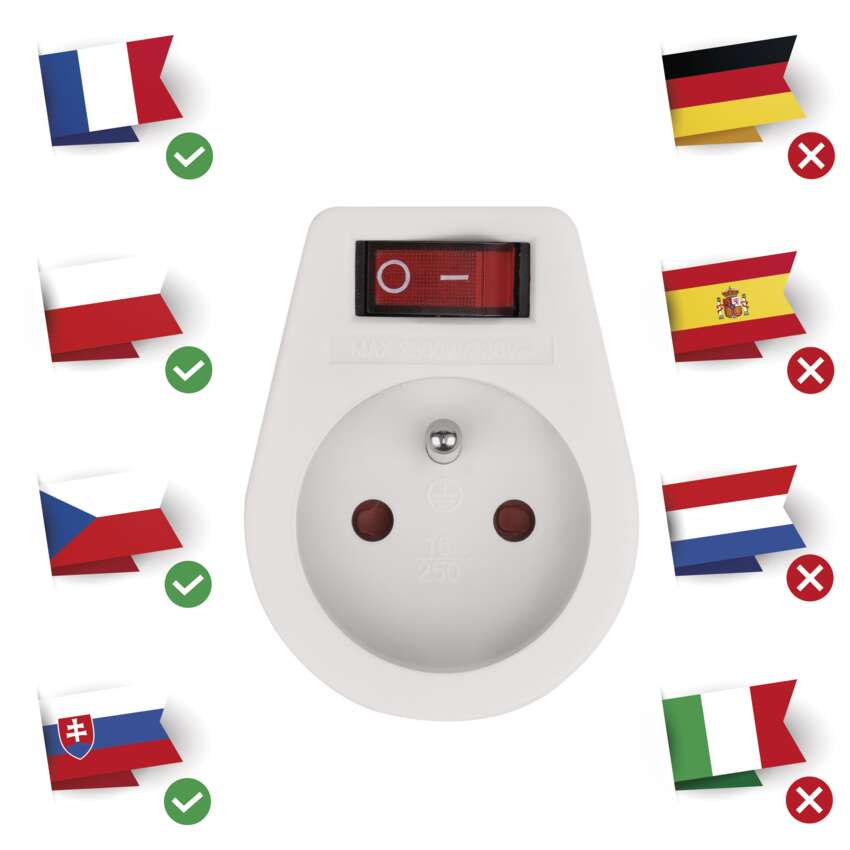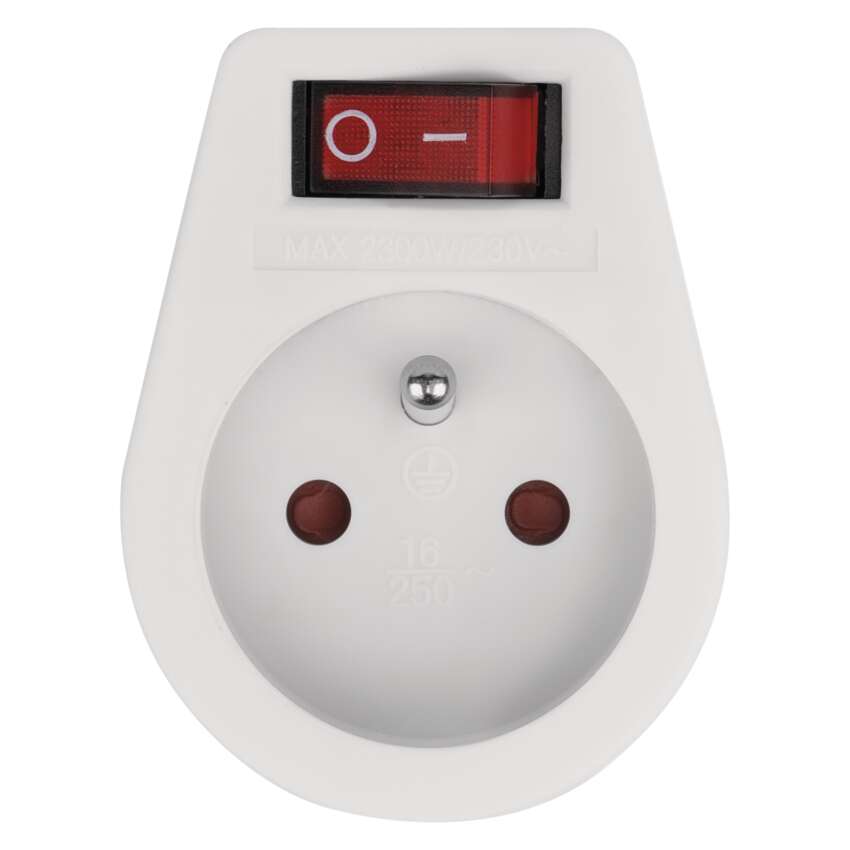 Praktická zásuvka v bílém provedení s vypínačem pro rychlé, snadné a bezpečné odpojení od elektrické sítě.